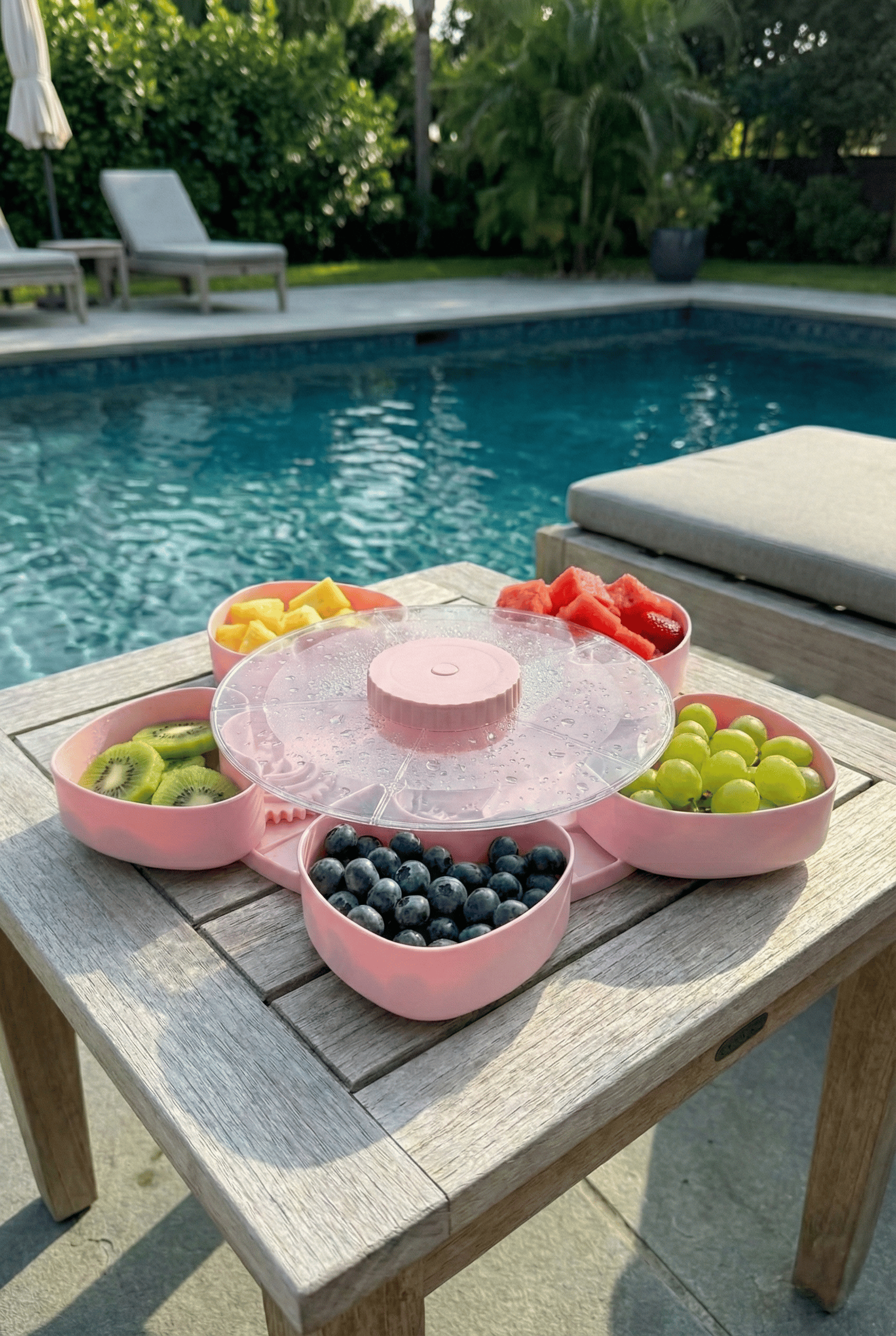 Upgrade your summer gatherings with the Rotating Snack Storage Tray — specifically engineered with a 360° rotating shield to keep your snacks crisp, fresh, and 100% protected from outdoor elements. Perfect for pool days, backyard BBQs, and beach trips where food safety comes first. ☀️🏖️