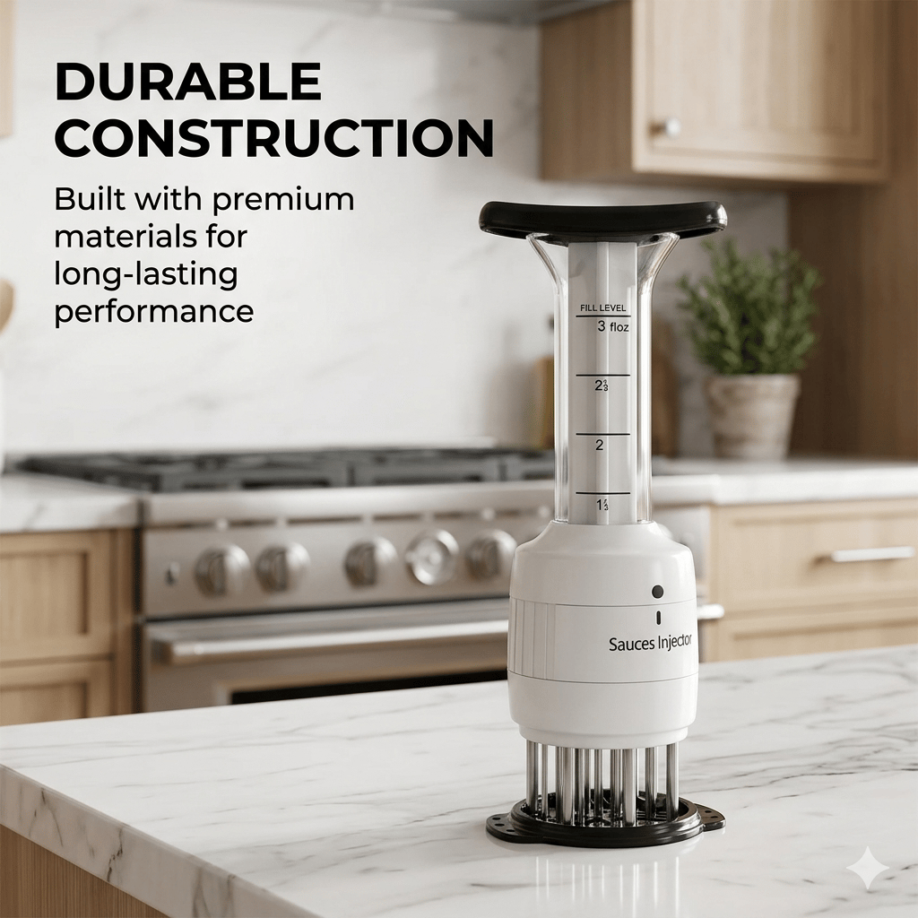 The needle mechanism injects marinades directly into meat, infusing every bite with maximum flavor and tenderizing tough cuts.